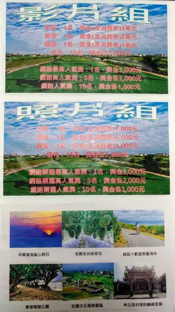 壯圍鄉長沈清山又表示,壯圍地處蘭陽平原東側,境內並無至高點,也沒有禁飛空拍機的限制,除了彩繪稻田的虎鯨,這段季節亦是壯圍最美的時刻,包括綿延十數里的太平洋沙灘、廍後海景鞦韆、永鎮的龜山朝日,以及季節限定的新世紀哈密瓜等農特產品,豐富的觀光資源,歡迎各地攝影愛好者前來壯圍搶高額獎金,用鏡頭記錄壯圍景點生態、在地文化之美。