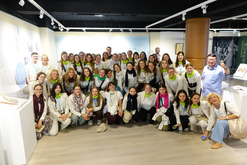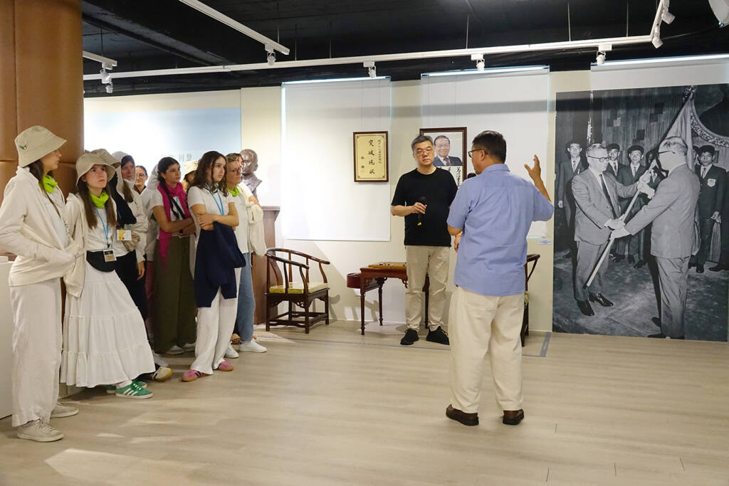 除了大師班的交流,基金會也安排聖史坦尼斯拉夫少女合唱團前往蘭燈空間,參觀正在展出的《祝福之地:愛與奉獻的回聲》特展。在基金會委員莊文生教授的導覽下,團員們透過林燈先生與范鳳龍醫師的生命故事,更深入理解宜蘭這片土地所承載的文化價值與人文精神,尤其當他們得知即將演唱的《丟丟銅仔》,正是源自宜蘭在地童謠時,團員們驚喜地露出笑容,更在展場中群體即興哼唱了起來,讓現場氣氛彷彿跨越了語言、感受出真摯動人的文化共鳴。