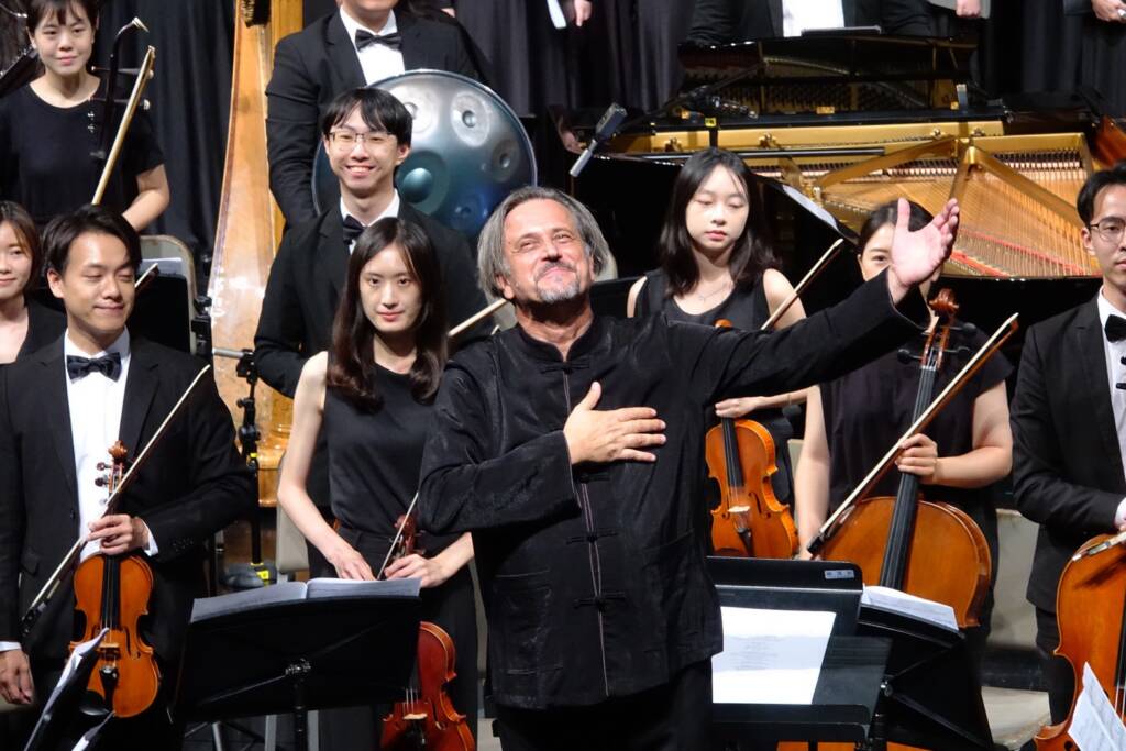音樂會的上半場由蘭陽女中合唱團與來自斯洛維尼亞的聖史坦尼斯拉夫少女合唱團輪番演出,最後合唱台灣民謠《丟丟銅仔》,以清亮純粹的聲線展現青春氣息;下半場則由作曲家裘比親自指揮,帶領約150名青年樂手與合唱團員,首演他專為本次活動量身創作的《詩篇清唱劇》。樂曲當中融合台灣本土的文化元素與斯洛維尼亞的音樂和聲語彙,從旋律到結構都充滿文化交織的深度,同樣的演出陣容於翌日移師至台北國家音樂廳,也讓許多首度登上國家級舞台的宜蘭在地團員們,在緊張與興奮交織中完成個人的成就解鎖。