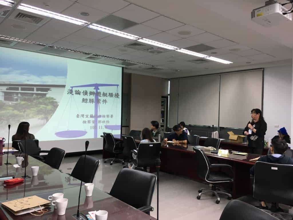為加強不當賞鯨行為查緝及蒐證,海洋保育署與臺灣宜蘭地方檢察署於本(11)月4日合作舉辦「賞鯨行為司法及法制人員交流工作坊」,本次工作坊由海保署吳龍靜副署長及宜蘭地檢署余麗貞檢察長共同主持,透過國內外鯨豚騷擾行為分析及案例討論,讓執法及司法人員對未來類似案例發生時,能在蒐證及行為判斷上有具體的幫助及共識。