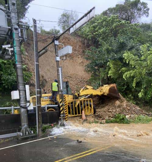 蘇澳分局同時通知路權機關第四區養護工程處南澳工務段派遣機具及公路保全人員前往排除清理落石,目前雙向車道封閉管制中,尚未恢復雙向通行。