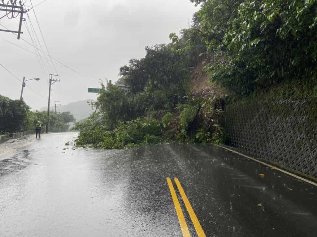 蘇澳分局轄區於今(1)日中午12時48分接獲報案,稱於台九丁線2.7公里處有土石坍塌阻斷道路影響人車通行,恐發生交通事故。為維護用路人安全,獲報後由本分局蘇澳派出所立即派員前往協助交管指揮,提醒路過人車小心通行,經現場瞭解目前無人員受傷,且無車輛行經遭土石淹埋。