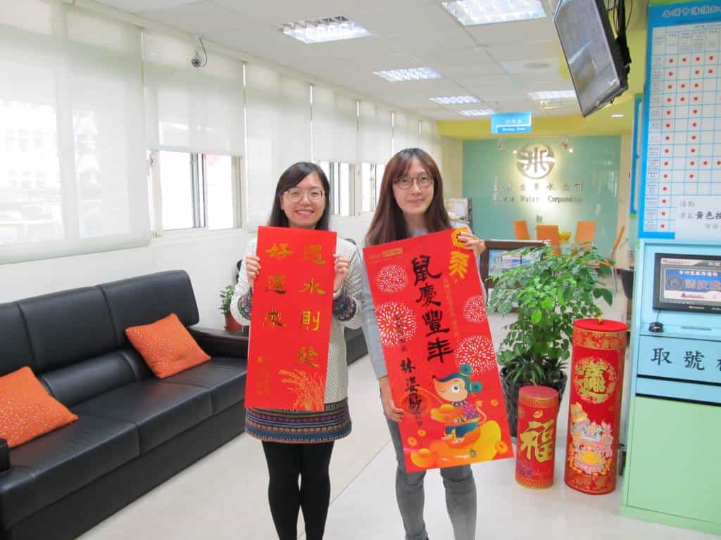 春節即將到來,台水公司特別印製「遇水則發 好運來」喜氣春聯 100 份;宜蘭縣政府亦跨機關合作提供 500 份精美春聯,兩幅春聯均擺放在北區服務所服務台免費供民眾索取,來洽公的鄉親表示:來繳水費還能拿到美麗的春聯,真是太棒了!因為數量有限,想索取的鄉親動作要快,送完為止。