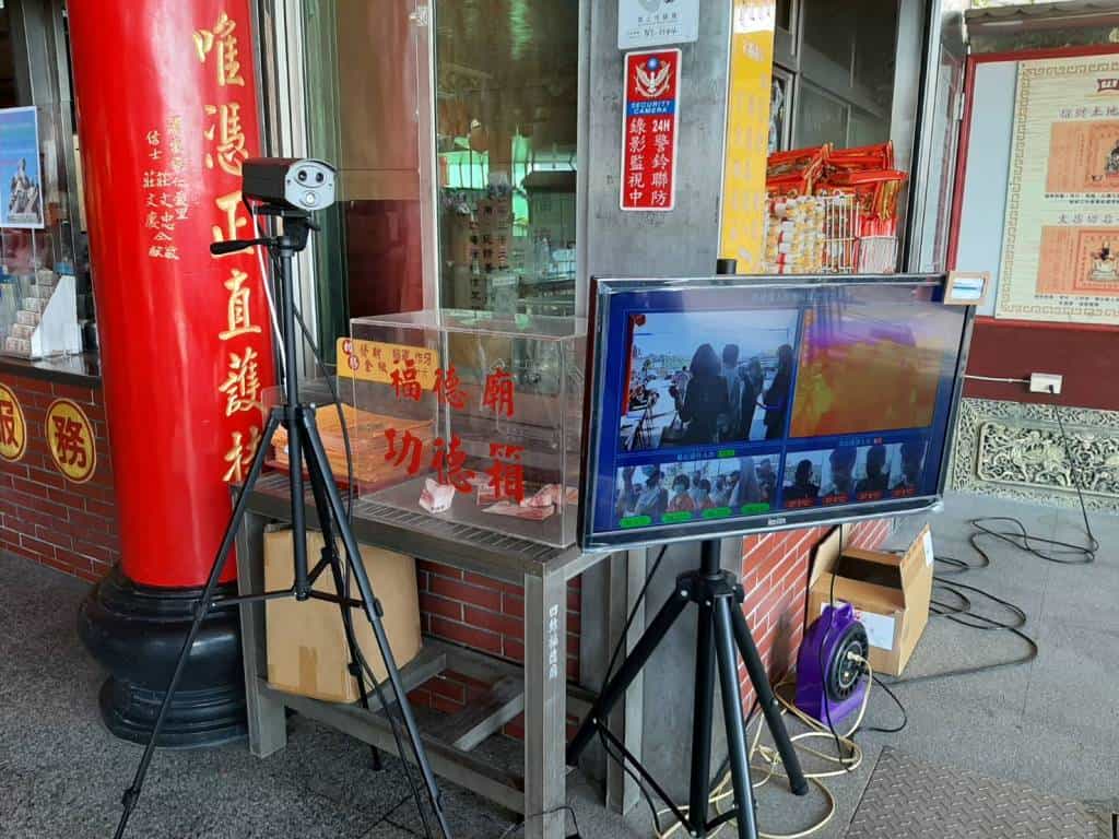 主委高志肇指出,首先為避免發燒民眾進入廟宇參香,特別在該廟拜亭設置兩台「紅外線體溫檢測儀」管控發燒民眾不得入廟參香。另在適當場所放置感應式酒精4罐,以方便信徒隨時使用。