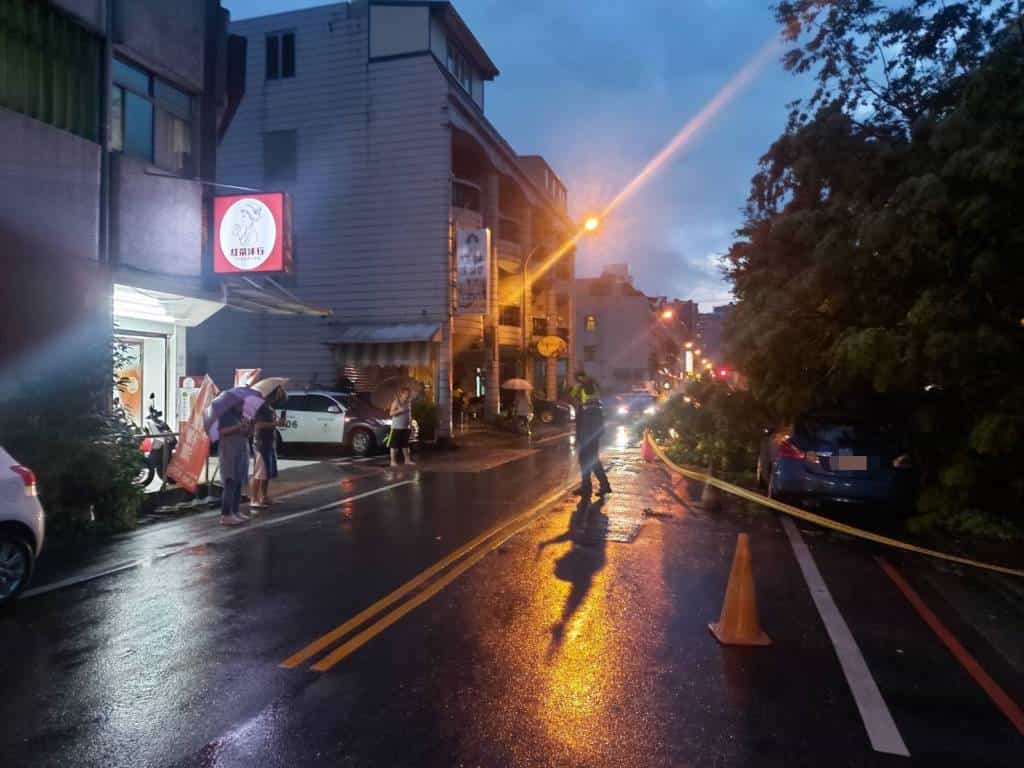 梅雨鋒面將至,大雨急下,造成宜蘭市農權路文化中心旁之路樹倒塌,壓毀停放路邊二部自小客車,宜蘭分局民族所警員楊上緯、柯智耀於今(11)日晚間18時15分許獲報即趕赴現場處理,員警現場立即拉起封鎖線,並於現場交通疏導及管制,提醒路過車輛小心通行,並已通知業管單位到場處理。
