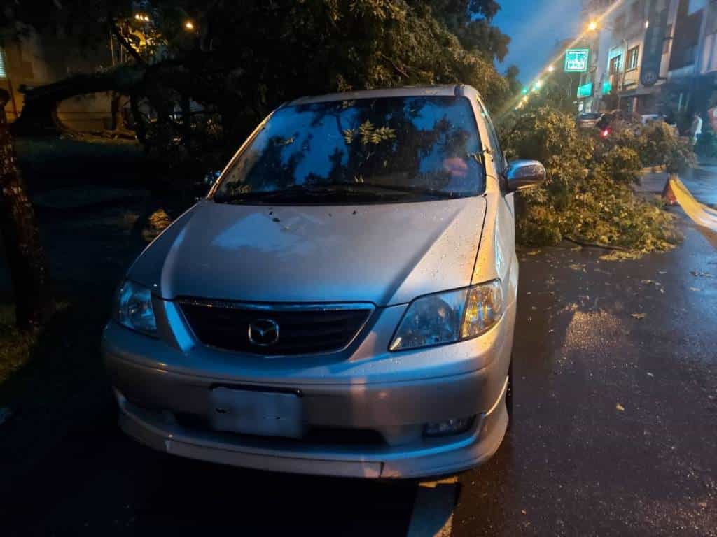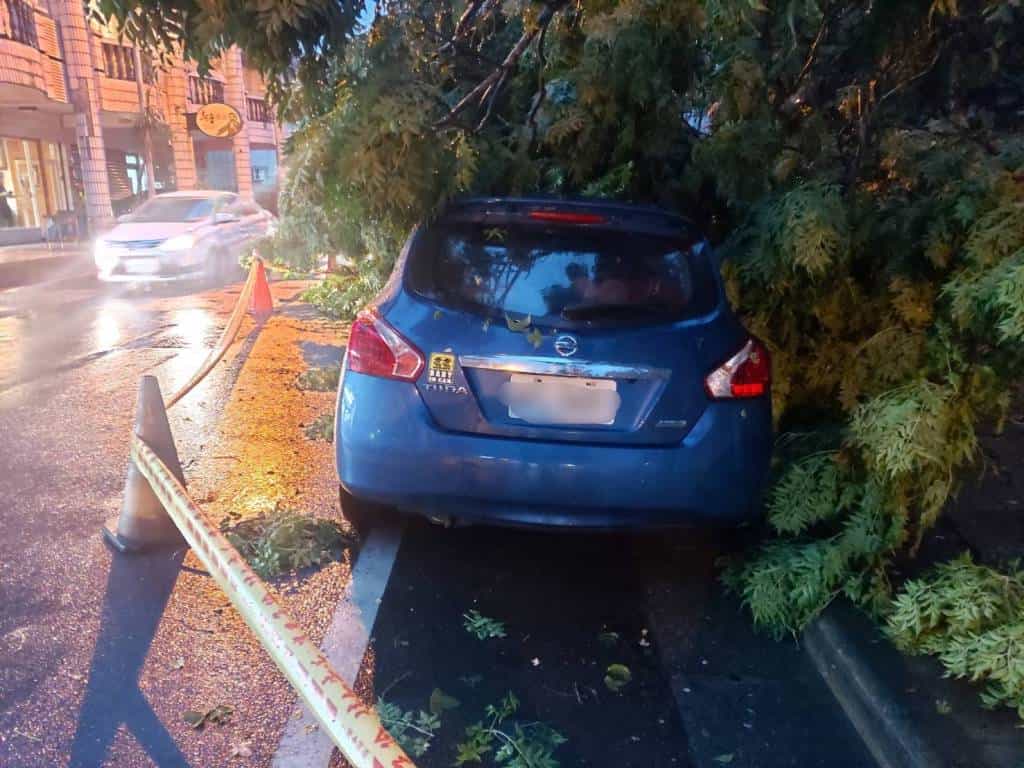 宜市突降大雨造成農權路上路樹倒塌 壓毀停放路邊二部自小客車