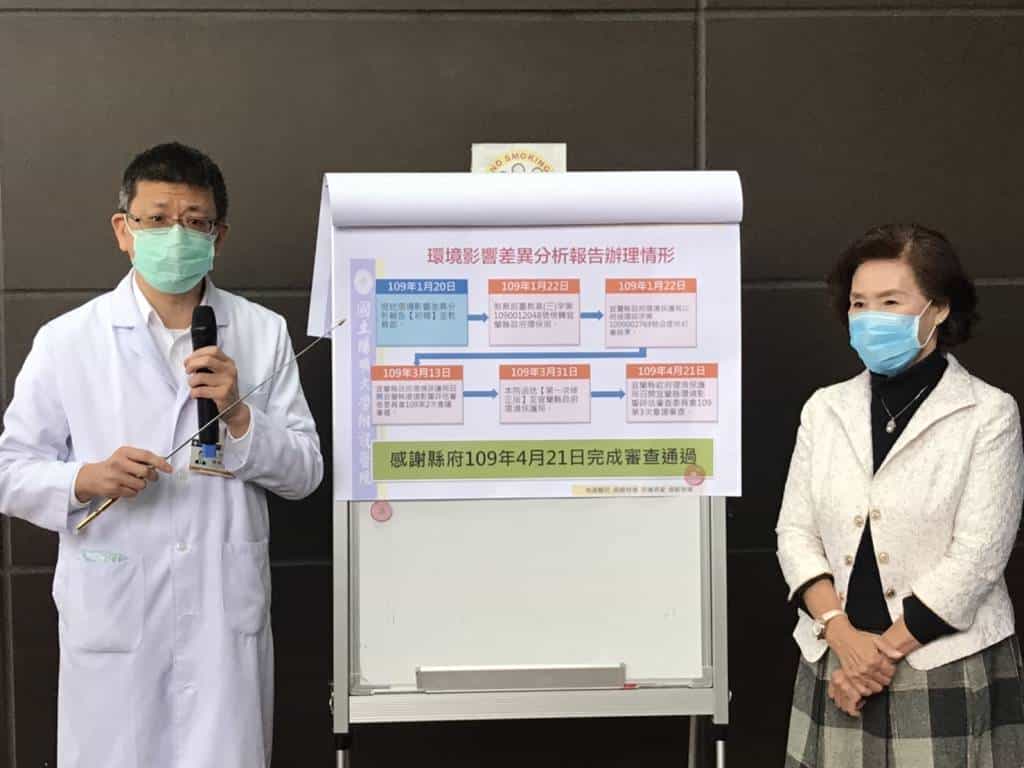 為加速陽大二期工程進度,縣府環保局前後召開三次宜蘭縣環境影響評估審查會議,就院方所提環境影響差異分析報告進行審查,原預估6月完成審查,經陽大附醫修正調整報告內容,於21日獲得委員決議「審查通過」,讓本案往前跨進一大步。