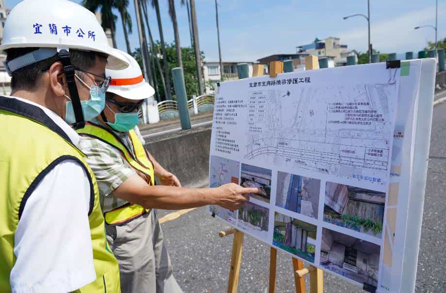 宜興橋為本市南北向聯絡的重要橋樑,除鄰近新生抽水站、力行抽水站,橫交跨越192縣道及宜蘭河,橋下空間亦是宜蘭市慈安社區及小東里巡守隊的活動範圍。宜興橋自民國88年啟用後距今已20餘年,市公所近期時常接獲市民陳情橋面伸縮縫不平及橋下有漏水情形,因此積極編列預算執行「宜蘭市宜興路橋梁修護工程」,來改善宜興橋的使用品質。