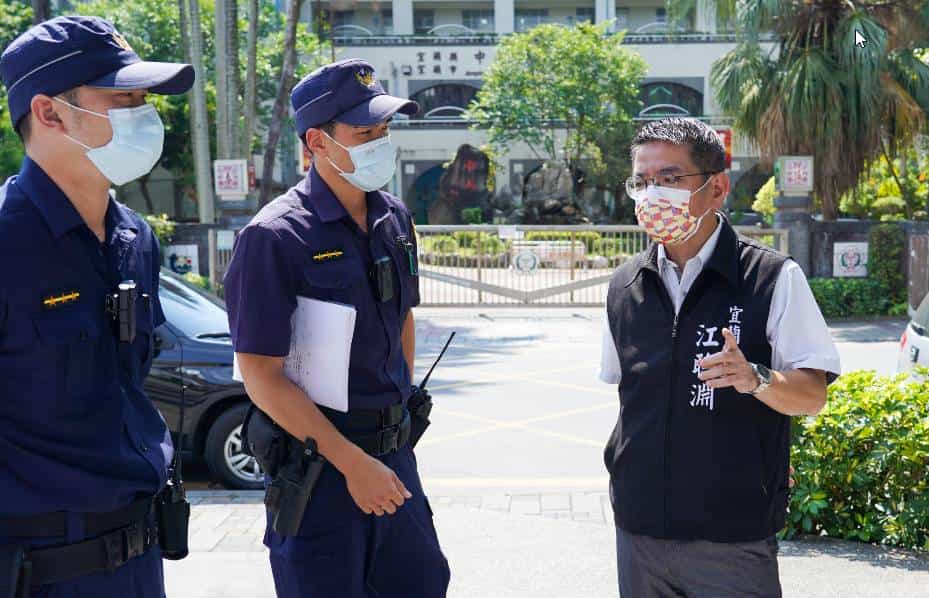 宜蘭市長江聰淵表示,中山公園是宜蘭市的重要景點,周圍商家眾多,車水馬龍,隨著防疫政策的宣導與落實,雖有改善未配戴口罩的現象,但仍有少數民眾於園區內進行群聚活動及未正確配戴口罩,另日前中央流行疫情指揮中心已經宣布,全國進行三級開設,為更加落實防疫,本所管轄之宜蘭河濱公園籃球場、壘球場、足球場、土坡場、法式滾球場與賽車場已進行關閉,並且將防疫措施再升級,與警方這端進行更加完善的聯合巡察,一方由宜蘭市公所進行勸導及發給口罩,一方由警方進行取締,達成軟硬兼施策略,另也於本市管轄各公園內各易群聚點位轄內設立防疫相關的告示牌,時時刻刻提醒市民們「出門在外記得配戴口罩」,攜手保護我們的家園。