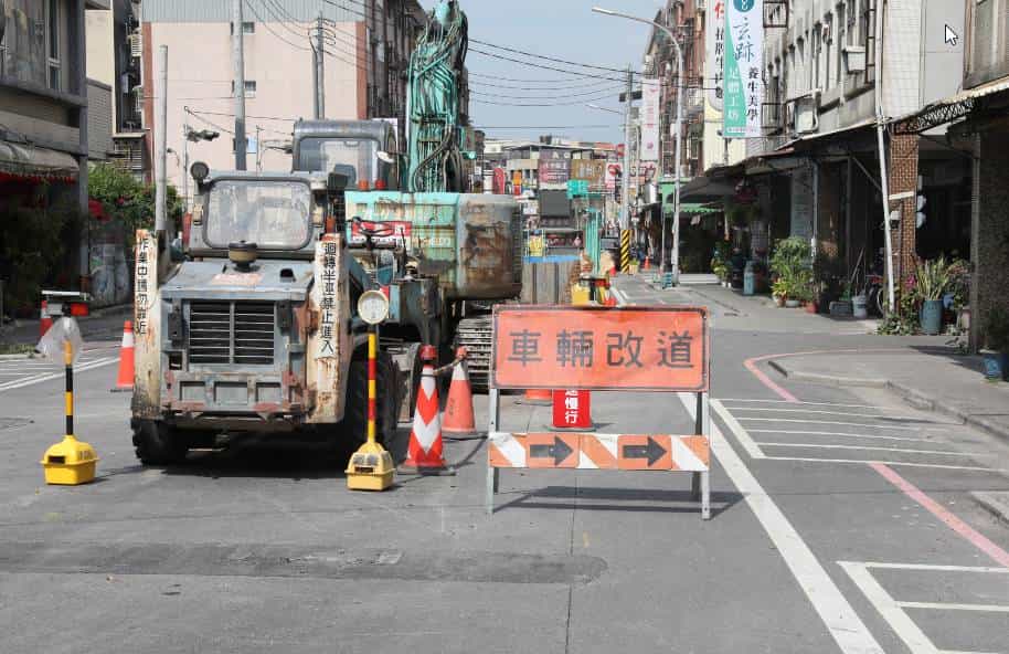 工程施工期間,兩側交通通行間距縮小,尚供機車通行,如遇大型機具進出及重點工項施作,改為單側通行或暫時性封路,除工區範圍內放置施工標誌外,工區範圍外各路口皆放置前方路口施工之標誌,並於交通尖峰時刻安排人員於路口協助車輛通行。