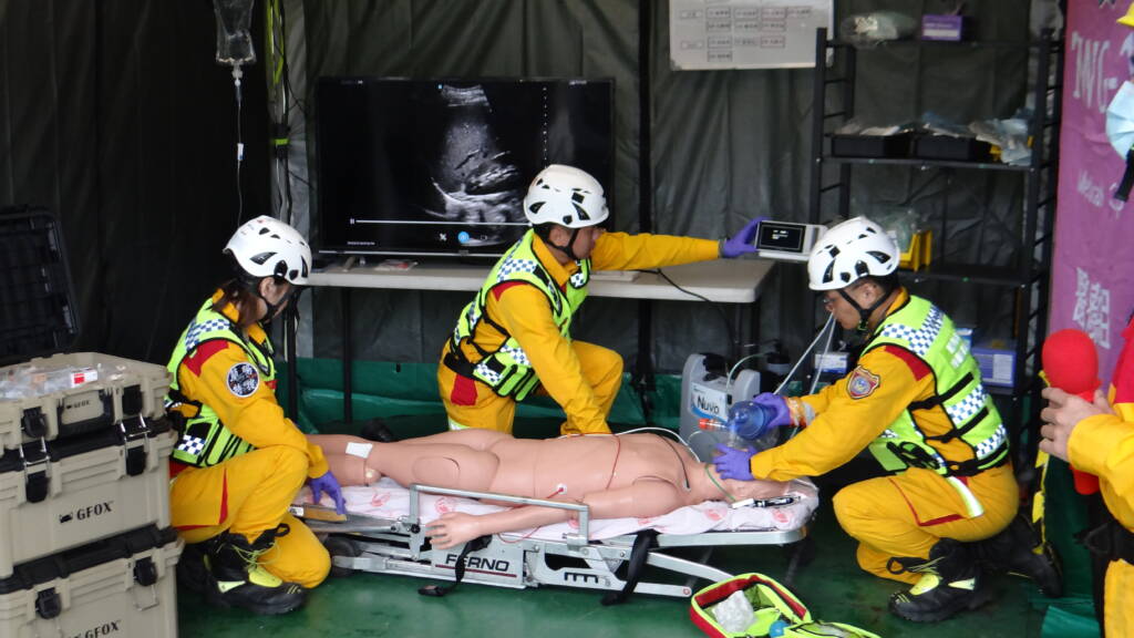 「醫療組」由本局高級救護技術員結合醫師及護理師共同執行任務,除負責災害現場傷病患處置外,也肩負搜救隊伍隊醫角色,隨時掌握搜救人員身體狀況,並透過醫療帳棚、藥品與各項醫療設備,提供現場穩定的醫療支援。