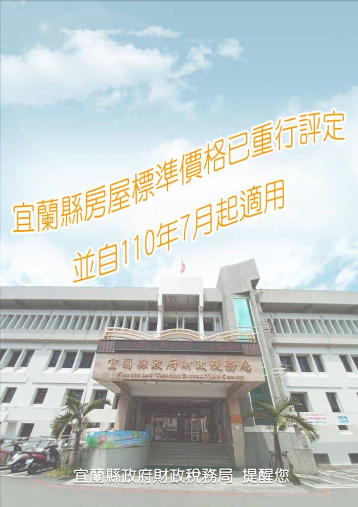 宜蘭縣政府財政稅務局表示,房屋標準價格是計算房屋稅的基礎,而房屋標準價格的組成是房屋標準單價、折舊率、地段率等3項要素;依據房屋稅條例第11條規定,房屋標準價格每3年評定1次,現行標準將適用至110年6月30日止。今年宜蘭縣不動產評價委員會開會評定,考量目前社會經濟狀況,房屋標準單價全面凍漲,地段率僅因都市計畫道路新闢工程,交通便利程度提升,調升礁溪鄉1筆路段;宜蘭市5筆路段、大同鄉10筆路段及南澳鄉8筆路段調降,餘路段均維持未調整。