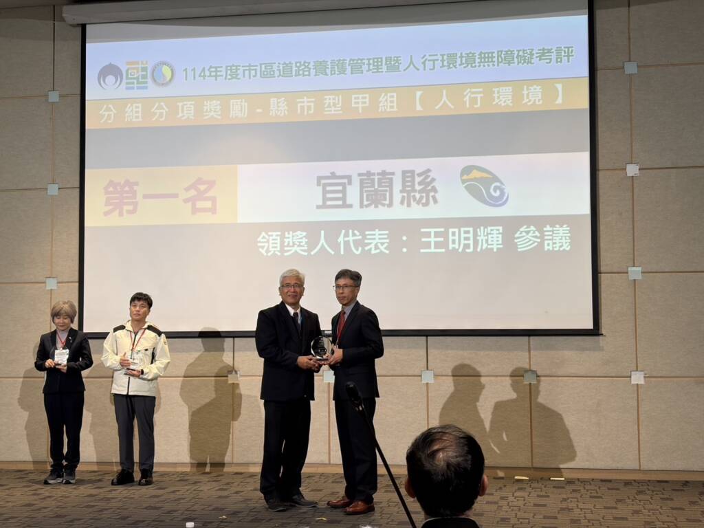 宜蘭縣政府在市區道路維護與人行環境提升方面再創佳績,於內政部辦理之「114年度市區道路養護管理暨人行環境考評計畫」中,一舉拿下6項獎座,並在整體評比中榮獲縣市型甲組甲等肯定,連續兩年縣市型甲組第一名之殊榮。本次在「政策作為」、「道路養護」、「人行環境」、「街廓考評」及「學區考評」等分項,皆獲縣市型甲組第一名佳績,展現本縣推動道路與人行環境改善之成果持續深獲中央高度肯定。