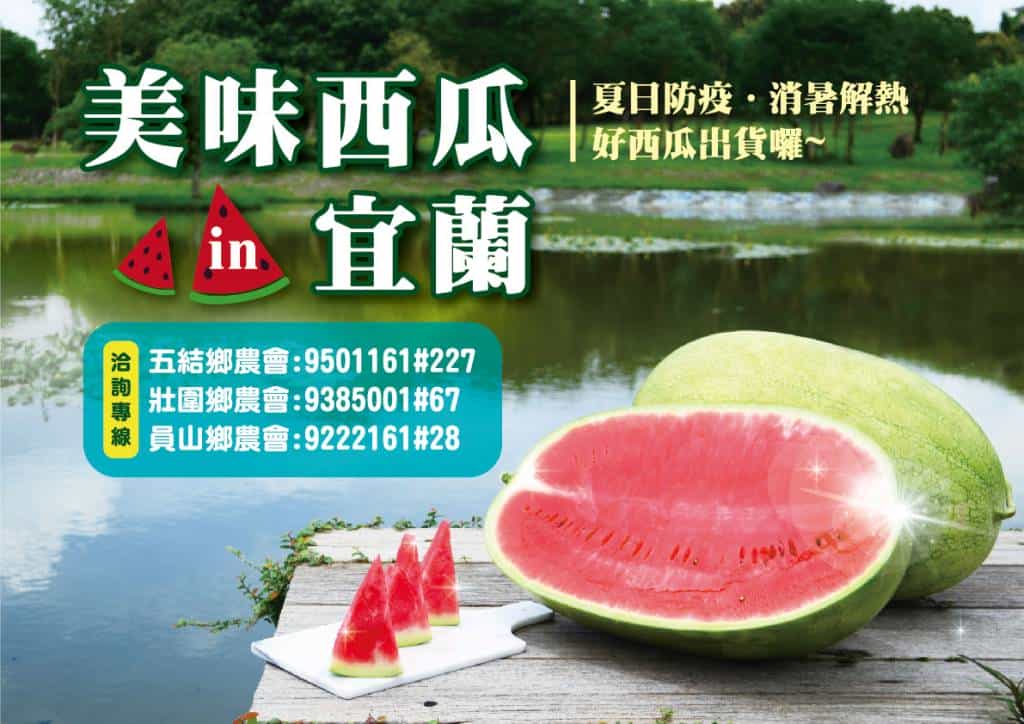 另外,每年六月是宜蘭瓜果上市的季節。縣府表示,縣內西瓜主要種植在蘭陽溪中下游高灘砂礫地。當地環境特殊、砂質土壤透水性佳,表層富含豐富有機質,且汲取中央山脈潔淨水源,成為西瓜美味的關鍵。加上今(110)年氣候良好,西瓜品質優良、鮮甜多汁,林縣長鼓勵民眾多加訂購,利用電話訂購宅配到府服務(洽詢專線:五結鄉農會9501161#227、壯圍鄉農會9385001#67、員山鄉農會9222161#28),共同支持在地農業。