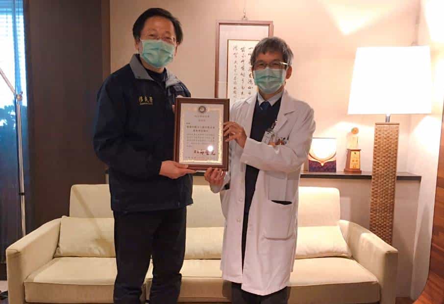 所長李界瑩近日也率隊拜會宜蘭監獄典獄長黃建裕,雙方針對近期監所防疫措施交流經驗。黃建裕提到,宜蘭監獄特別重視新收階段的防疫處置,採高標準,如受刑人量測體溫逾攝氏37度即辦快篩並送隔離室觀察。再者,宜蘭監獄原為因應A型流感,於年初備有一些口罩庫存,但為降低汰換率,特別組建新的生產線製造口罩布套供職員使用。說到此,黃建裕當場致贈80片給宜蘭所,暖心舉動是作為同性質公部門關係融洽及敦親睦鄰的最好證明。此外,李界瑩前往羅東博愛醫院,為一起印尼籍受收容人的醫療協助案向院長盧進德致贈感謝狀,也藉此機會就所方與院方的防疫合作面交流想法。