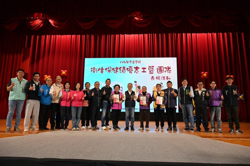 為肯定志工長年投入衛生保健志願服務,宜蘭縣政府一年一度的「宜蘭縣衛生保健績優志工暨團隊表揚」活動於今(29)日上午9時在宜蘭縣運動公園體育館隆重舉行,向志工們無怨無悔的付出致上誠摯敬意。今年並特別頒發高齡志工獎感謝狀(銀髮奉獻獎37人及榮耀高齡獎11人),表彰長者在志願服務上的持續投入。他們不僅成為年輕志工的重要典範,也以行動證明「年齡不是限制,而是力量的展現」。本次獲頒高齡志工的授獎者,有3位88歲志工,蔣坤森志工自民國85年起在宜蘭市衛生所服務,已近29年,除了擔任志工大隊長外,災害發生時總是第一時間投入,以身作則;來自三星鄉服務逾24年的黃碧霞志工,積極參與社區活動,長期主動關懷失能、獨居個案,問安與探視從未中斷;另於羅東聖母醫院服務的石符志工,自民國100年在放射腫瘤科協助病患,服務時數逾1,200小時,雖然來自香港,不擅台語,仍耐心陪伴及引導病患,並擅長製作麵食與糕餅分享,為醫療團隊帶來溫暖。