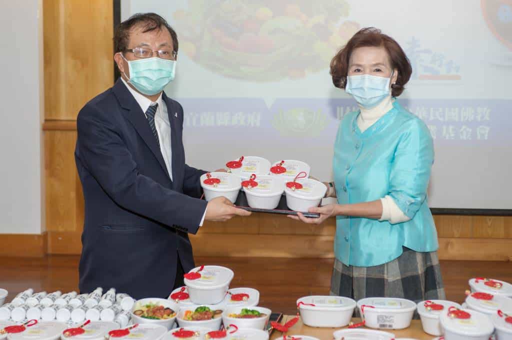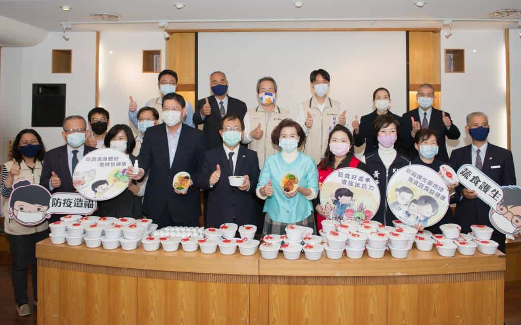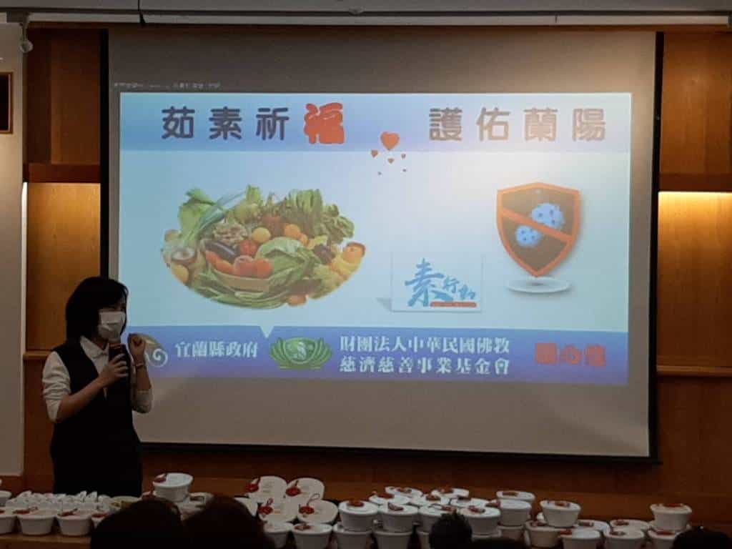 慈濟基金會於疫情期間致力推廣健康蔬食,於4月16日中午準備70份營養蔬食便當給宜蘭縣政府,推廣茹素防疫新觀念,宜蘭縣長林姿妙也鼓勵大家響應慈濟基金會發起的茹素祈福活動,從體內環保做起增強身體免疫力,同時也能支持在地農民。