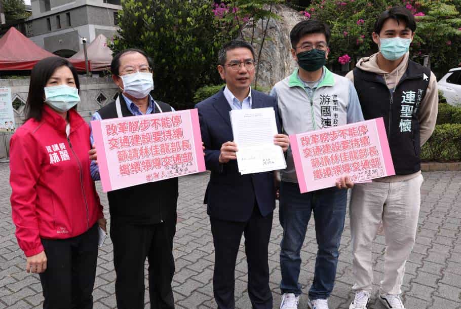 台鐵太魯閣事故傷亡嚴重,交通部長林佳龍展現政務官風範,負起政治家風範,請辭交通部長一職,然而宜蘭各項重大交通建設在林部長任內有了顯著進展,因此宜蘭縣各界不分黨派發起連署,期盼林佳龍部長繼續留任,繼續領導交通部,讓蘭陽平原交通運輸事業發展的精進政策,可以不間斷地推動下去。
