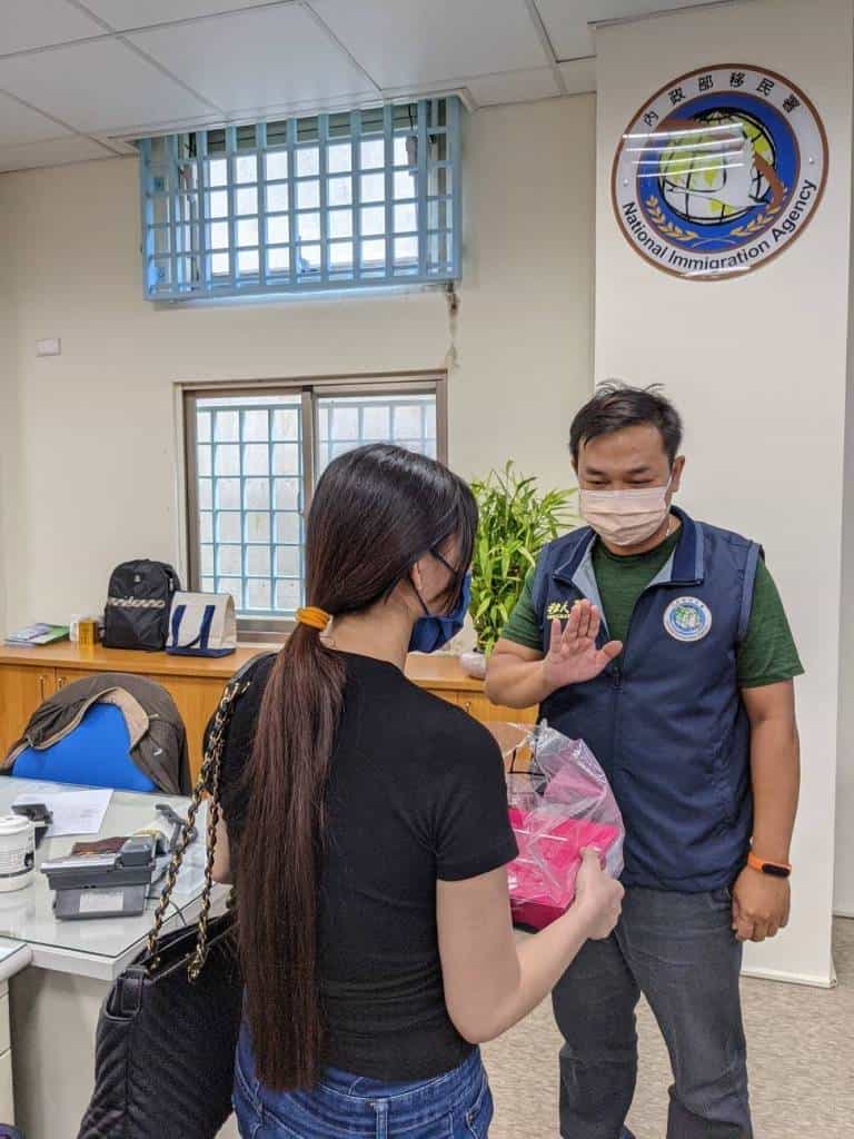 家住宜蘭縣冬山鄉新住民阮女士,因感念移民署北區事務大隊宜蘭縣專勤隊於日前熱忱協助辦理其母親逾期停留之自行到案,特別自製家鄉月餅,於本月3日親送該隊,希望請移民官享用。但因秉持公務員廉政倫理規範,且協助不諳規定的新住民家庭,本為自身職責,受理同仁連忙婉拒,直稱:毋湯!