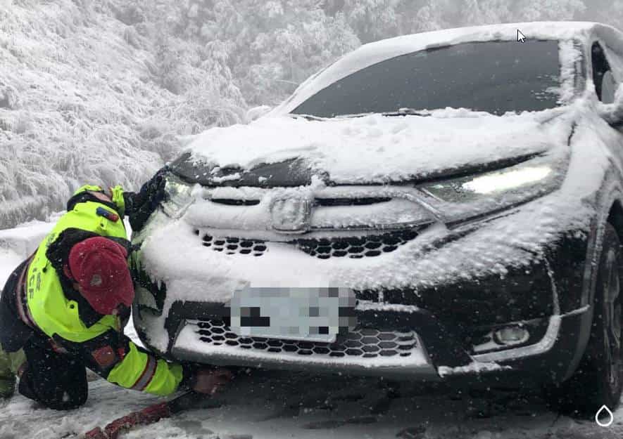警方經瞭解發現,該民眾一家於7日入住太平山莊,8日一早欲前往翠峰湖賞雪,因未配掛雪鍊,車輛於雪地中失控打滑,受困於雪地中,陳等2員見狀立即向前協助,以巡邏車拖曳方式將車輛先脫離積雪處,協助其一家脫困,並勸導他們於下雪期間,若地面積雪,為顧及民眾人車安全,未配掛雪鏈車輛禁止進入檢查哨。