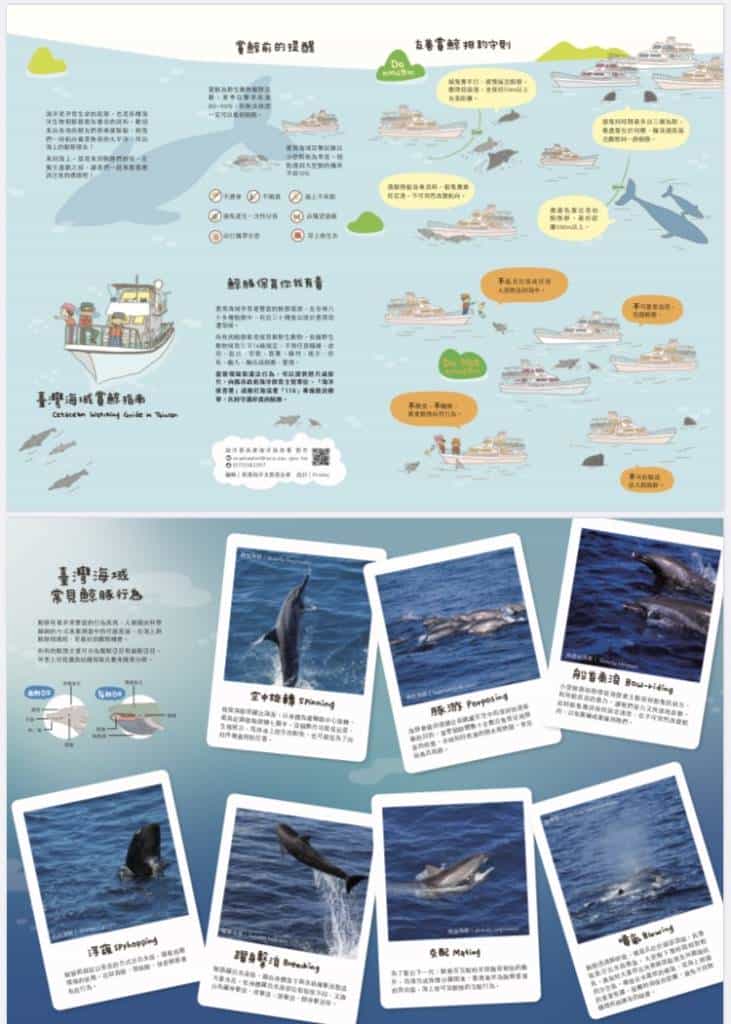 台灣鯨豚資源豐富,全球80餘種鯨豚中,近30種曾出現於我國周遭海域,海洋保育署已透過「台灣海域賞鯨指南」,說明友善賞鯨之重點,海巡署希望大家當個負責任的遊客,於開心賞鯨之同時,切勿包圍、衝撞切入、餵食、穿越拆散鯨豚群,減少對於鯨豚族群之衝擊,以維護海洋生物安全,相關資料可至海洋保育署網頁查詢(https://www.oca.gov.tw/ch/home.jsp?id=192&parentpath=0,6,190)。