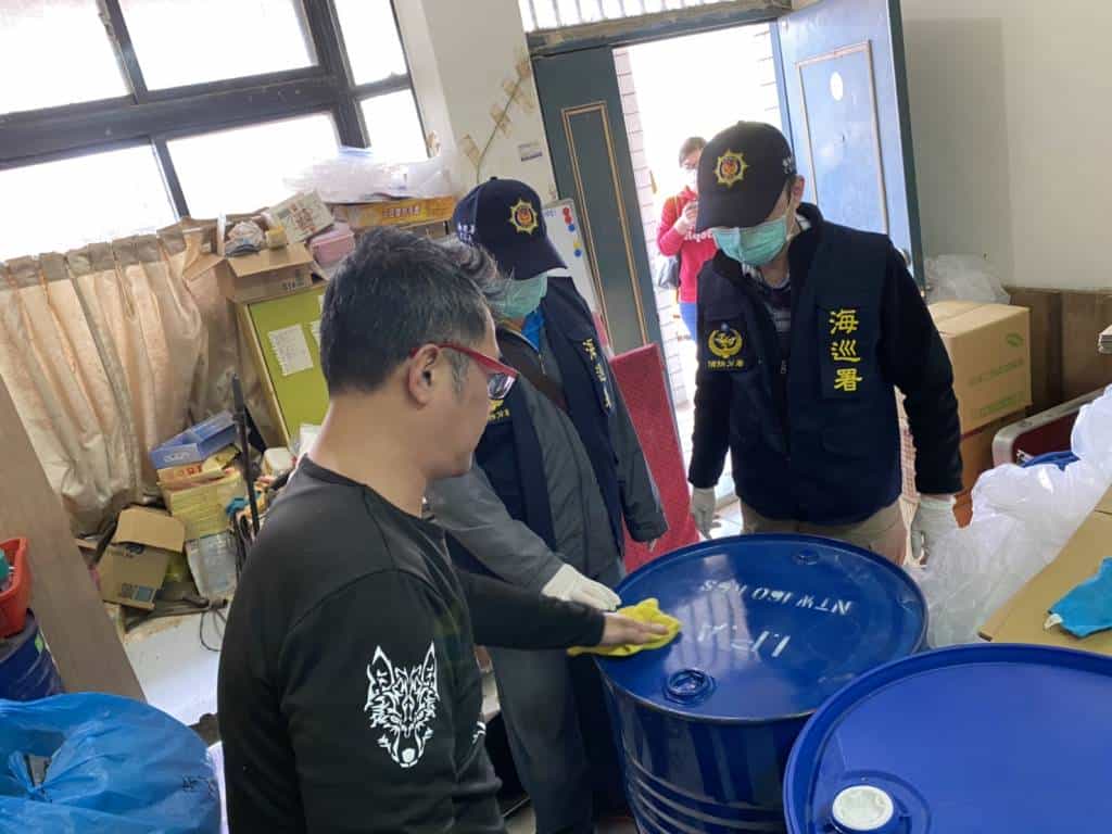 海巡署偵防分署台東查緝隊日前會同宜蘭查緝隊、宜蘭縣警局刑警大隊、臺東縣警察局臺東分局及宜蘭縣政府等單位,報請宜蘭地檢署指揮,於宜蘭縣頭城鎮破獲一座非法酒精製造工廠,現場查獲2名涉案國人、酒精成品15公升、異丙醇400公升、乙醇70公升、分裝工具一批,全案依違反詐欺罪及藥事法移送臺灣宜蘭地方檢察署偵辦。