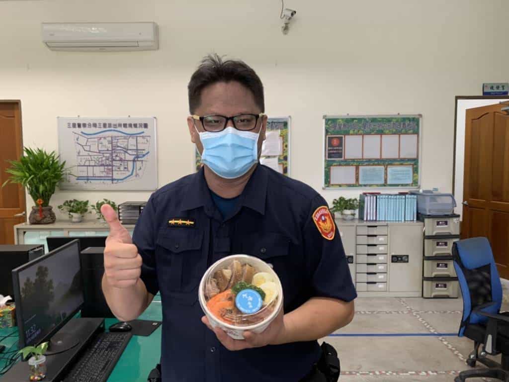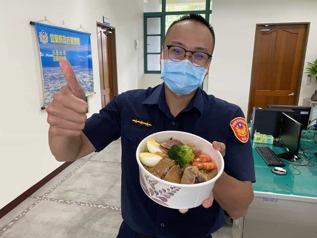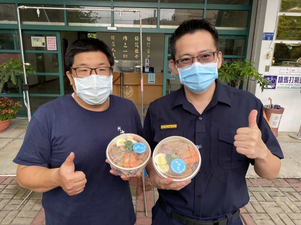 另蘇澳鎮阿海海 鮮餐廳黃智偉老闆特於同日中午製作健康且美味的海鮮便當 80 盒,贈與分局,讓同仁辛勞防疫期間,也能吃得飽、吃得 健康,三星波麗士直呼又驚又喜,激動表示「揪甘心」! 員警平日不僅負責治安、交通、為民服務等工作,現亦須維護防疫站安全、宣導和執行各項防疫措施等相關工作,增加 第一線員警與民眾的接觸染疫風險,花檣佛堂代表人黃一展先 生及阿海海鮮餐廳黃智偉老闆的溫馨舉動,為波麗士們加油、 打氣,令人倍感窩心。