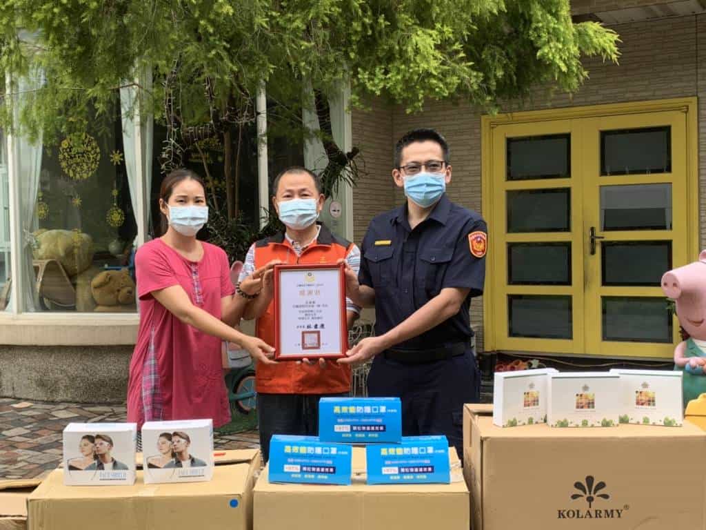 因應國內疫情持續嚴峻,全國防疫延長第三級,三星鄉花 檣佛堂代表人黃一展先生為體恤三星分局同仁防疫工作辛勞, 於 6 月 24 日特別致贈三星警分局 140 個耳掛式眼面罩、7,000 片(140 盒)防疫口罩、140 盒益生菌酵菌粉。