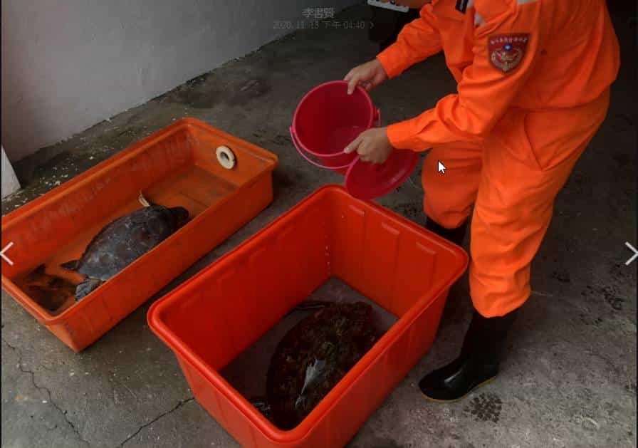 海巡署北部分署第一岸巡隊大里安檢所石城執檢站於今(13)日上午11時03分,接獲民眾通報,「光O12號」漁船在定置漁網區誤捕海龜2隻,立即通報相關單位到場協處,並進行野放。