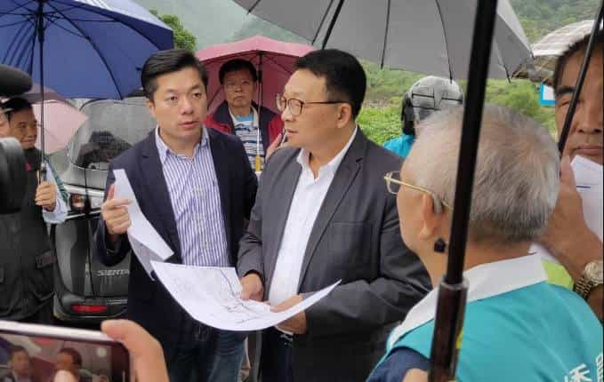 立法委員陳歐珀今(29)日偕同縣議員陳俊宇、代表會副主席李漢洲、湖西村長張明昌、地方居民及自來水公司,共同會勘「員山鄉湖西村崩山湖及二湖高地供水延管工程」完工後情形。