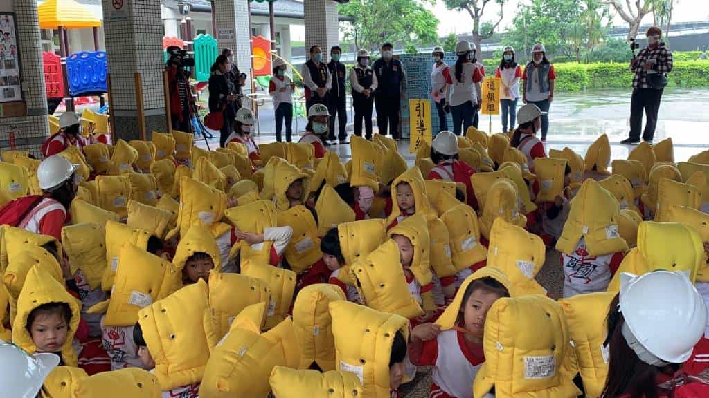 鎮立幼兒園藉模擬實作演練強化幼兒園師生災害防救與應變能力,養成小朋友在地震發生時有正確的避難本能反應,辦理1分鐘內完成地震避難掩護(趴下、掩護、穩住),及疏散時提醒小朋友遵守不推、不跑、不語原則,依疏散路線疏散至廣場集結,相當逼真。