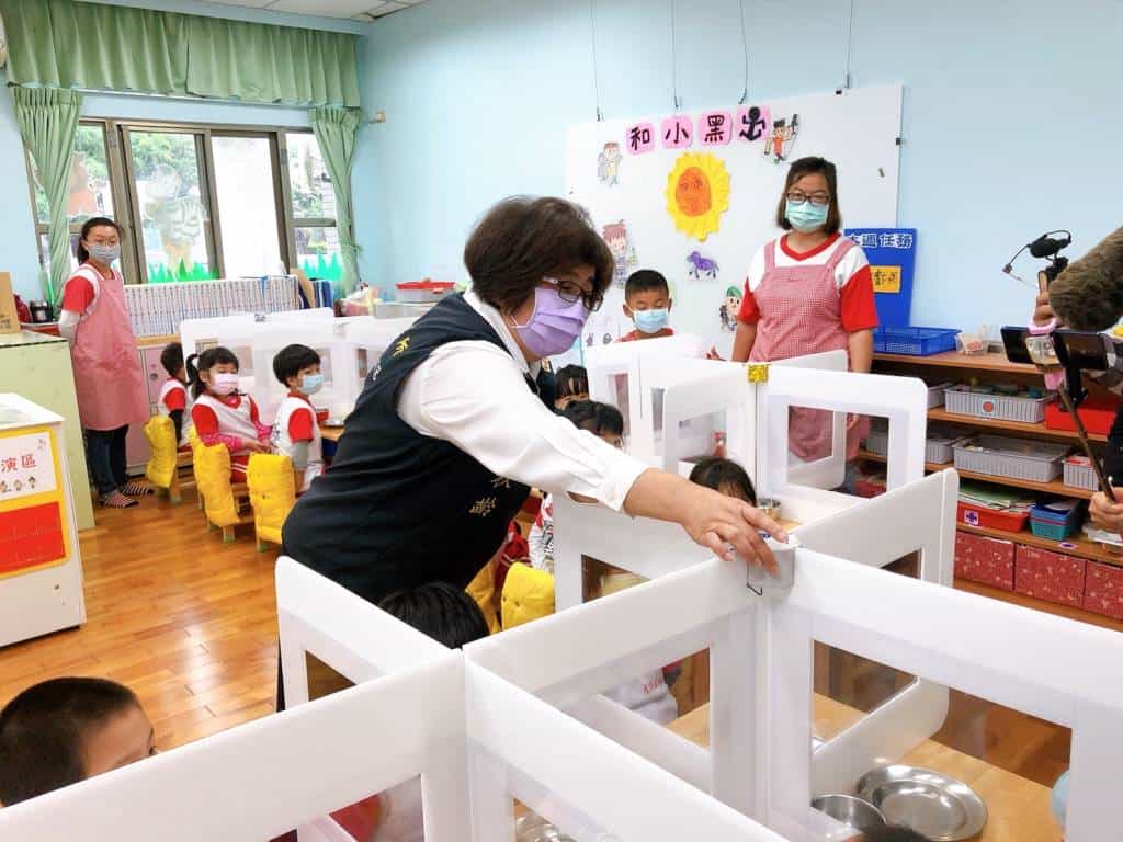 羅東鎮立幼兒園因應「嚴重特殊傳染性肺炎」社交距離防規範,利用翻翻書的原理改裝成「DIY防疫隔板」,及藉模擬實作強化幼兒園師生災害防救與應變能力,養成小朋友在地震發生時有正確的避難本能反應,知道災害發生時要如何保護自己,此2項演練相當到位,鎮長吳秋齡今天前往視察並全程參與後,表示讚許。