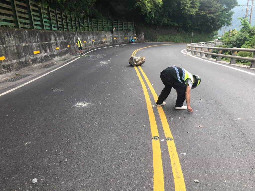 蘇澳警分局東澳派出所於昨(19)日下午15時34分接獲報案,於宜蘭縣南澳鄉台九線116.3公里南下路段有落石砸中車輛事故發生。現場警方立即協助排除,並通知南澳工務段派遣大型機具移除落石及保全人員協助交通管制,恢復道路順暢。