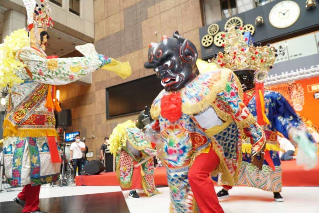 今(13)日在臺北車站大廳熱鬧滾滾,宜蘭縣政府帶來一群可愛的大小朋友,一起舞動神尪,並將傳統民俗技藝融合現代街舞,迸出新火花,宜蘭國小附設幼兒園的小朋友扮演千里眼、順風耳,扛著迷你版的媽祖和神轎,傳神的重現媽祖遶境的熱鬧景象,相當逗趣可愛!