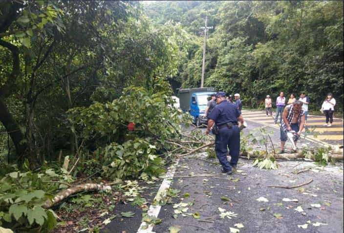 大同鄉員山村宜51線800公尺有路樹倒塌,三星分局牛鬥派出所副所長余志明、警員古清祺於本(6)月8日8時10分接獲勤指中心通報,立即連繫村民攜帶電鋸前來幫忙,經警民通力合作一番努力下,順利清除傾倒之路樹,避免民眾開車行經該路段時發生危險。