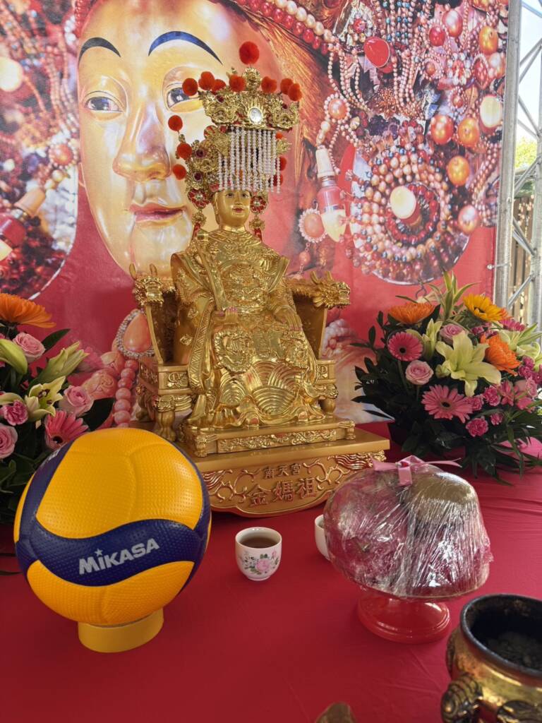 此次活動一大亮點,是特別恭請金媽祖神尊親臨球場(高 2.2 尺、重達48公斤),為全體選手祈福加持。金光閃耀的媽祖神尊,象徵守護與庇佑,不僅增添比賽的莊嚴氛圍,也展現宗教文化與體育交流的創新融合,成為現場最矚目的焦點。