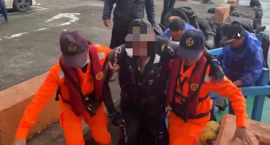 粉鳥林安檢所人員獲報後,立即通報宜蘭縣政府消防局第二大隊蘇澳分隊,並於漁船進港時,派遣安檢所其餘同仁前往現場將送往蘇澳榮民醫院治療。 場,由海巡人員共同將傷者抬上車,送往蘇澳榮民醫院治療。