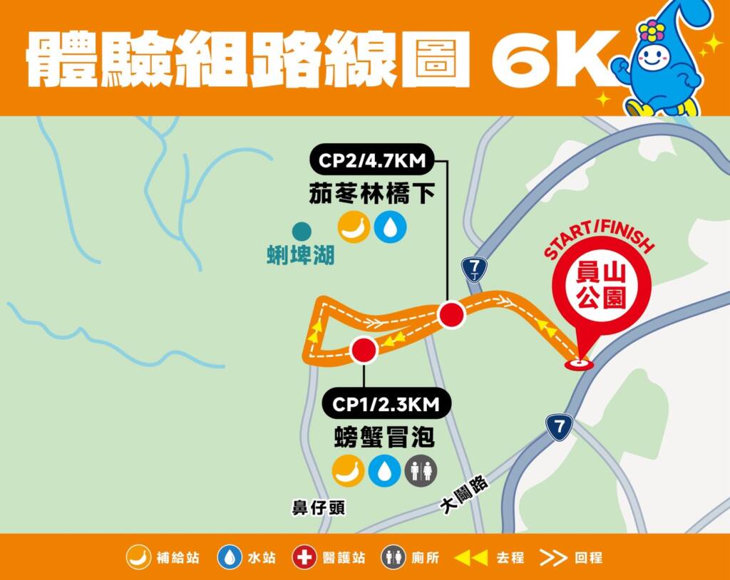 除了絕美賽道,賽事補給更是不容錯過!公所延續首屆好評,提供豐富的在地特色美食供跑友補充能量。參賽贈品則以員山吉祥物「水滴娃娃」為設計核心,包含機能排汗衫、毛巾、頭巾及精美獎牌。此外,活動更串聯在地旅宿與特約店家提供專屬優惠,讓跑者「有跑、有吃、又有拿」。