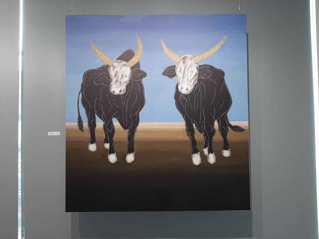 謝里法老師在美國求學期間,因為牛的模樣讓他想起故鄉,於是拿起畫筆畫牛,國外20年,回台定居20年,不管是腳踩在自己的土地上,與牛零距離貼近,聞到牛的氣味,或者是在異鄉,謝里法老師都持續用各種作畫手法畫牛,與牛為伍多年,牛是謝老師的鄉愁,屬牛的謝里法老師發現自己的繪畫從每一筆到每一幅畫作,都是對牛這個存在與意象的一種推演,這次本館將展出數十幅謝里法老師豐富多樣以牛為主題的畫作,有具象有抽象,有寫意有解構,色彩豐富,引人入勝。