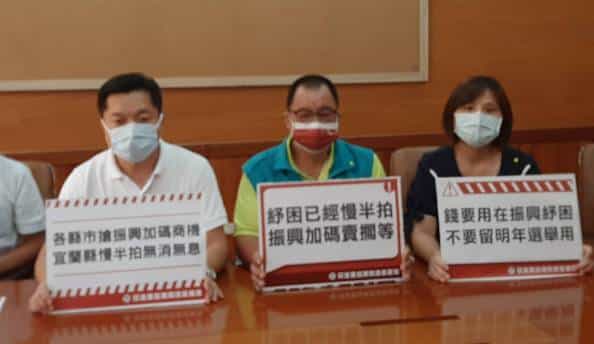 縣議員謝燦輝提出質疑,先前縣府預定興辦童玩節,一紙公文就將動用上億預算,活動停辦後紓困、振興的方案卻遲遲推不出來,難道真的如坊間謠傳,要將預算留到選舉年使用?縣議員吳宏謀、張秋明說,希望縣府盡速擬定振興方案,把握即將到來的商機,幫助縣內產業復甦,也避免造成不必要之誤會。