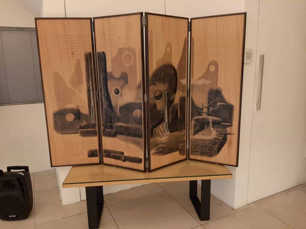 本展展出的作品,都以木質作為基材,以複合媒材與技法創作。期望藉由作品呈現一場存在於視距之外,心象之內的展演。