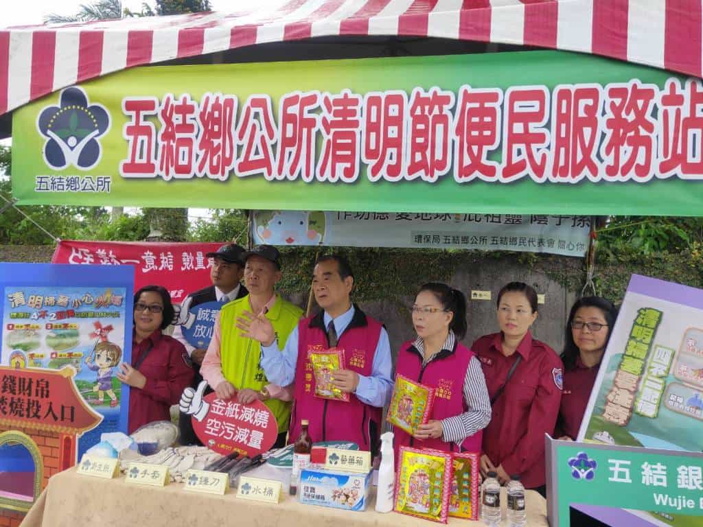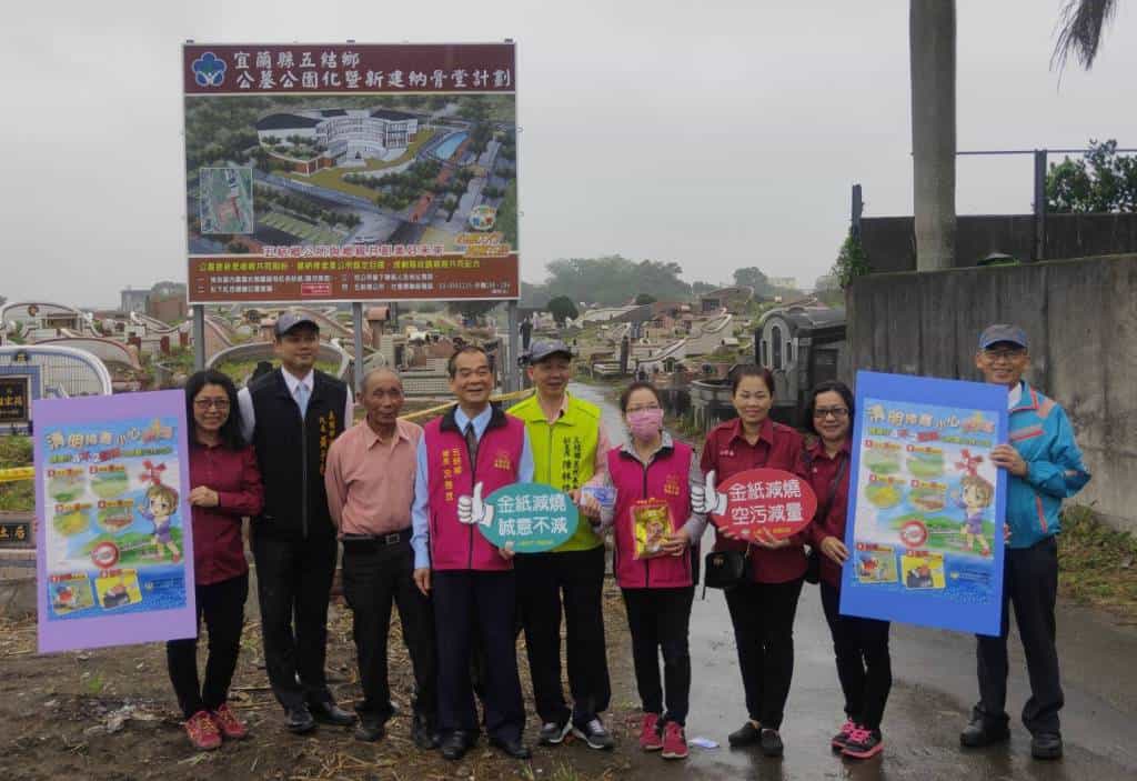 五結鄉公所為配合民眾祭祖墓區道路通行需求,已先行僱工清除公墓雜草,另為宣傳環保祭祀之減碳理念,響應宜蘭縣政府環保局「低碳城市」政策,鄉公所率先創新提供700份環保金紙,希能移風易俗鼓勵鄉親,並換取掃墓民眾的紙錢、鞭炮,讓五結鄉清明節尚環保。