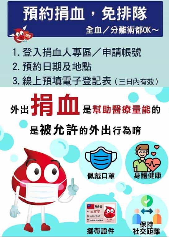 宜蘭捐血站為了在疫情期間維持供應醫療單位用血,針對各項防疫措施也進行強化,包括「手部消毒」、「實聯制」、「TOCC」、「消毒毯踩踏」、「全程戴口罩」、「捐血椅每人使用後立即消毒」等,同時也把羅東捐血車的服務時間及天數進行延長與增加,減少民眾群聚等待風險,要讓大家可以安心地捐輸熱血;對此宜蘭捐血站戴靜宜站長表示:「疫情嚴峻,全台捐血站都提高了防疫措施要來讓民眾安心捐血,同時維持血液正常供應,讓醫療現場可以持續照護病患,因為當前醫院端仍有需要血液供輸的病患要治療,血庫存量不足的情況,對分秒必爭的醫療前線來說無疑是造成危險的迫切急難,宜蘭捐血站一定會以嚴謹的防疫措施來讓民眾安心地『捐熱血、挺醫療』。也透過此機會,要來呼籲民眾多多利用網路或電話預約的方式來捐血或詢問人潮,善加運用人潮分流及避免久候,宜蘭捐血站聯絡電話:03-9325544,羅東捐血車聯絡電話:03-9576206。」