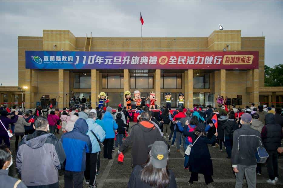 宜蘭縣政府於今年元旦上午7時在宜蘭運動公園體育館前廣場舉辦「宜蘭縣110年元旦升旗典禮」,為因應防疫措施,縣長林姿妙今天特別透過網路直播,與大家於在宜蘭運動公園體育館前廣場一起升旗、唱國歌,一起攜手迎接蘭陽第一道曙光。