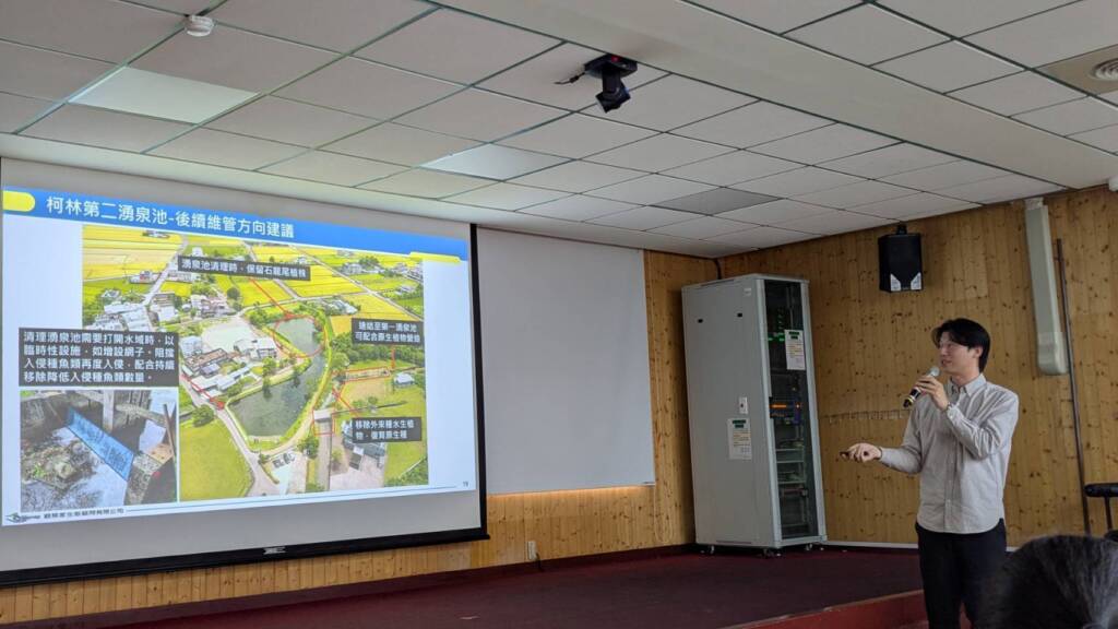 林業及自然保育署宜蘭分署為延續今年度國土生態綠網「松樹門湧泉」與「柯林第二湧泉池」兩處棲地營造改善成果,並促進地方參與,特別邀請在地維管單位及志工團體,包含:宜蘭縣冬山鄉公所、冬山鄉鹿埔村志工隊、農業部農田水利署宜蘭管理處、農田水利志工團、河川教育聯盟,舉辦「湧泉埤圳保育平臺會議」,共計30人參與。