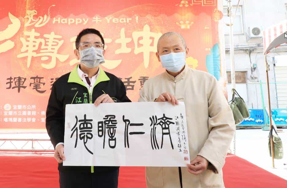 宜蘭市市長江聰淵表示,雖然疫情嚴峻,但傳統農曆過年代表一年新的開始,除了加強防疫之外,期望藉由年節的歡樂氣氛一掃疫情的陰霾,更祝福庚子牛年,萬事吉祥、平安順興。宜蘭市是一個蘊含文化歷史、擁有在地特色的城市,舉辦揮毫贈「春聯」及版印「年畫」,期盼傳統文化技藝及節慶能持續保存及傳承,讓民眾感受過年的吉慶歡騰氣氛,傳承傳統民俗藝術,透過多元活動融合文創、藝文,更將傳統文化融合文創,展現宜蘭深厚底蘊,也顯現宜蘭未來發展的實力。(依據衛生福利部109年12月24日衛授疾字第1090201087號公告民眾應全程配戴口罩)