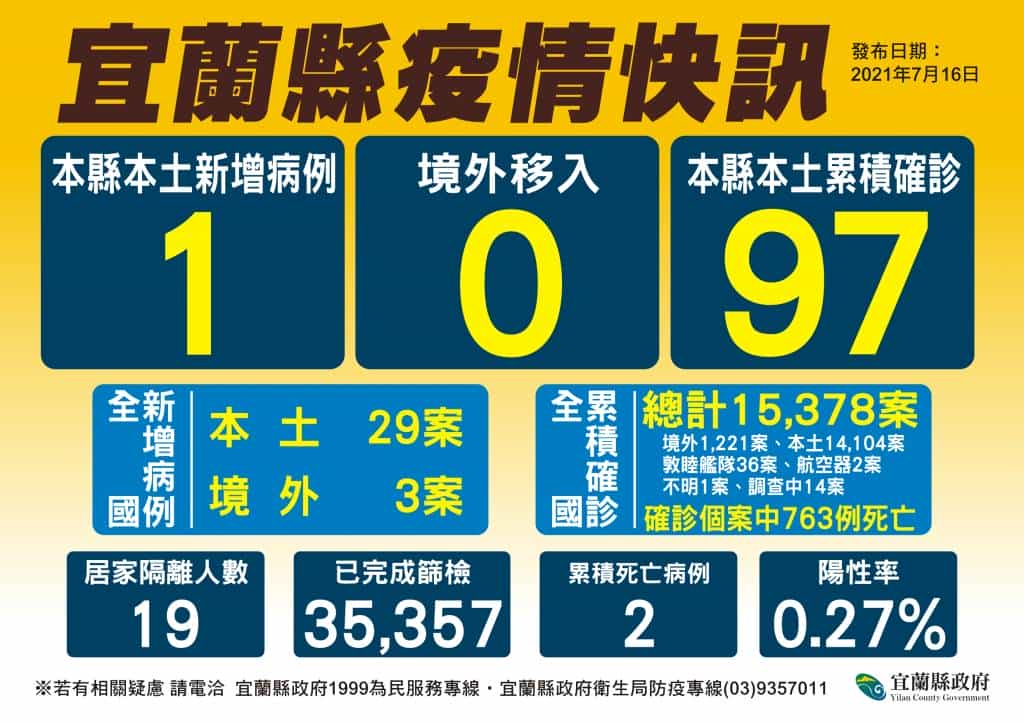 宜蘭今(16)日新增1例確診個案。縣長林姿妙表示,「COVID-19公費疫苗預約平台」已正式上線,呼籲18歲以上的縣民,踴躍上網登錄