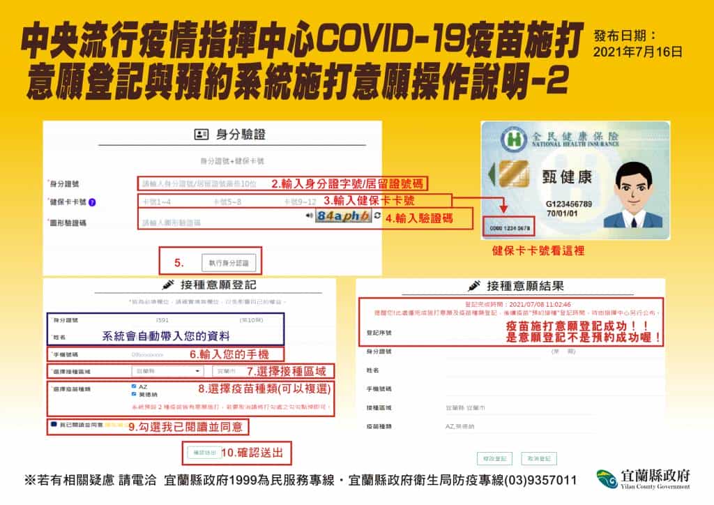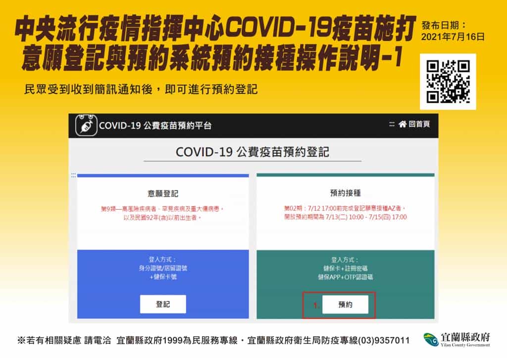 「COVID-19公費疫苗預約平台」已正式上線 呼籲18歲以上的縣民,踴躍上網登錄
