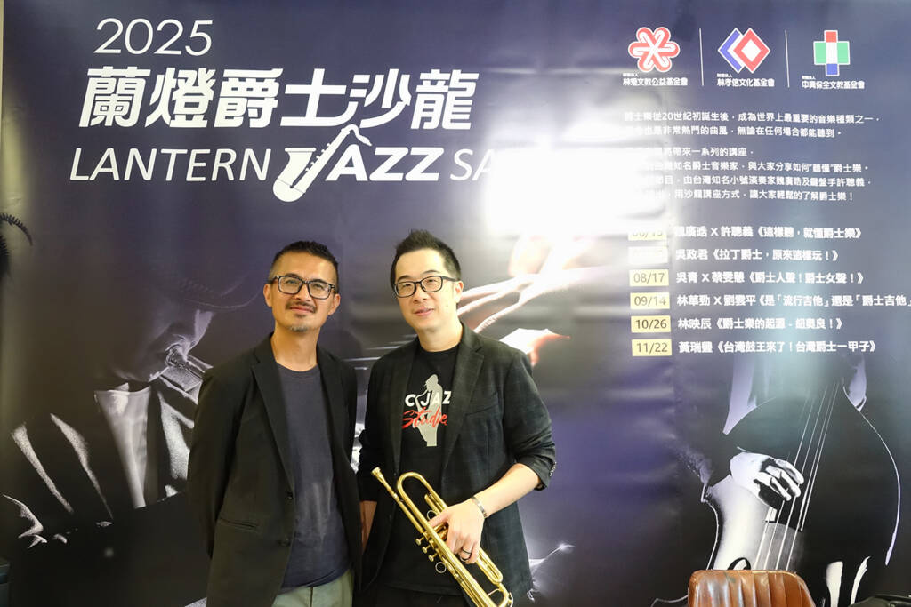 (下圖: 由林孝信文化基金會策劃推出的【蘭燈爵士沙龍】系列講座,首場特別邀請小號名家魏廣晧(右)擔任主講人,攜手爵士鋼琴手許聰義(左),帶領大家從入門視角貼近爵士世界。)