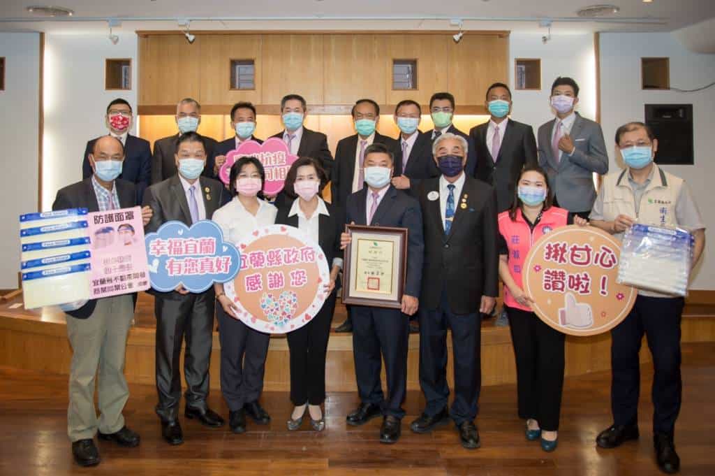 COVID-19疫情雖然漸緩,但仍不能掉以輕心,因此全國自8月10日起至8月23日,仍維持二級警戒。縣府也持續在積極落實各項防疫措施,全力整備篩檢量能,並攜手各界擴充醫療資源。在陳議員玉萍積極號召下,宜蘭縣不動產開發商業同業公會響應全民共同抗疫的理念,因此捐贈10,000個防護面罩,供給第一線醫護、防疫人員及疫苗接種中心使用,讓本縣醫護防疫人員多一份保障。